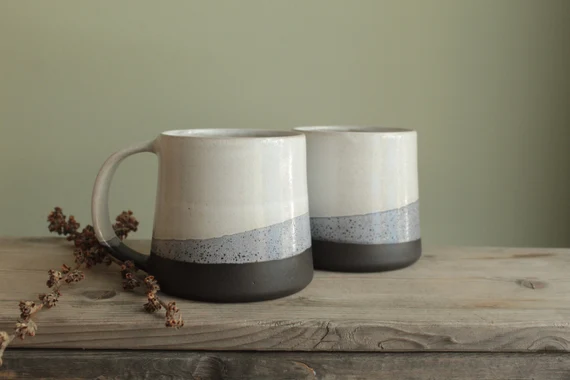 Porcelain mug presented with a modern minimalist silhouette, intended for everyday beverage use in global kitchens. The piece pairs a matte exterior with a visible glossy interior rim and is shaped for neat stacking and cabinet storage, arranged to integrate with neutral tableware and varied kitchen palettes.